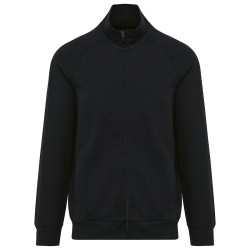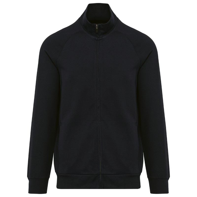 70% coton / 26% polyester / 4% élasthanne. Coton peigné. Tissu interlock. Traitement LSI (Low Shrinkage Interlock). Surpiqûres au col. Bande de propreté sur l'encolure intérieure. Zip nylon ton sur ton avec zipper métal et finition bande de propreté à l'intérieur. Manches raglan. Rib 1x1. 2 poches prisent dans la couture de l'empiècement. Pas d'étiquette de marque, uniquement une puce de taille pour faciliter la personnalisation.