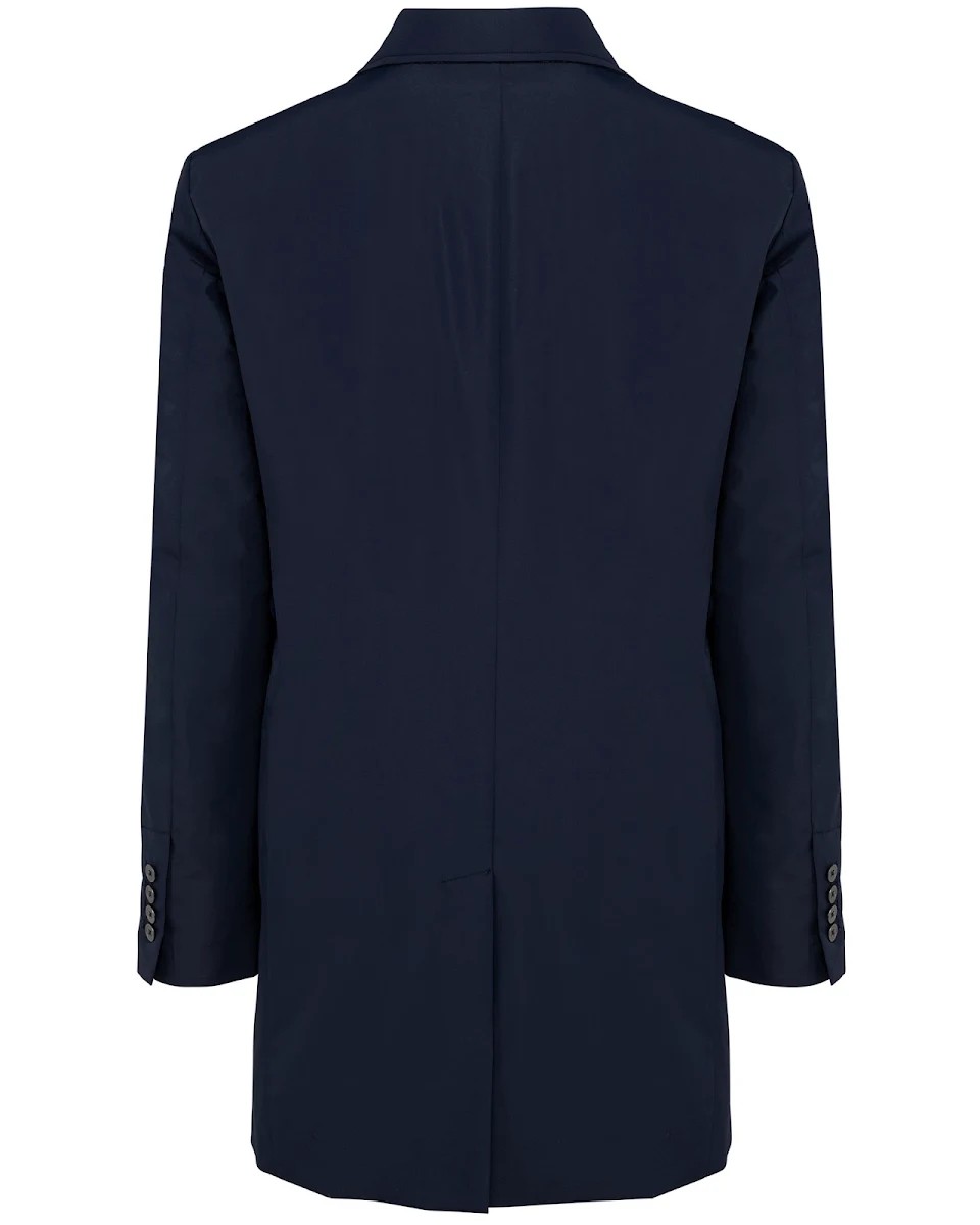 100% polyester. 3 couches contrecollées. Tissus imperméable 8000 mm. Rembourrage intérieur en Thinsulate™. Coupe-vent col tailleur avec intérieur de col en feutrine contrasté. Boutonnage sur le devant par boutons métalliques. Boutons métalliques sur bas de manches. 2 poches rabat devant et 1 poche passepoilée à droite. Poche intérieure zippée côté cœur. Fente bas du dos avec pression. Loop à l'encolure pour accrocher le trench. Zips de personnalisation à l'intérieur, bas du dos et côté cœur. Patch personnalisable dans le haut du dos. Pas d'étiquette de marque, uniquement une puce de taille pour faciliter la personnalisation.