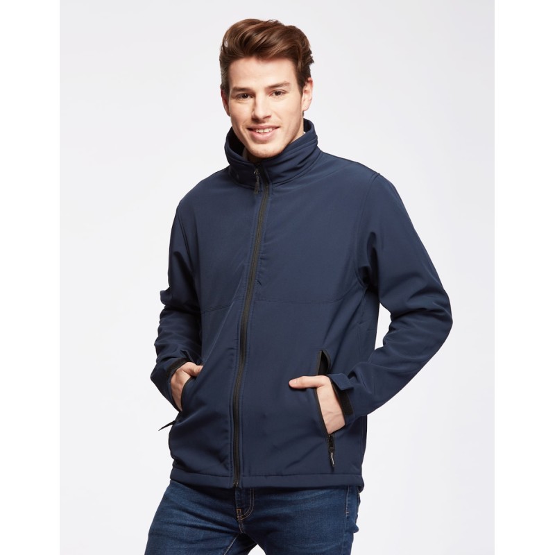 Blouson Softshell Homme, 94% Polyester / 6% Elasthanne. Respirant et déperlant. Polaire Contre-collée. Doublure intérieure par dessus les poches. 2 poches main zippées. Serrage poignet par Velcro. Disponible sur stock et livré sous 24/48h sans personnalisation, coloris disponibles : Gris dans les tailles 2XL