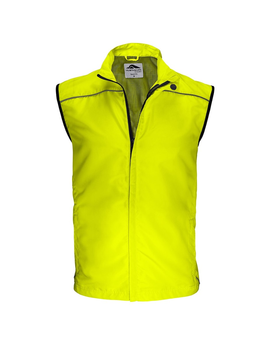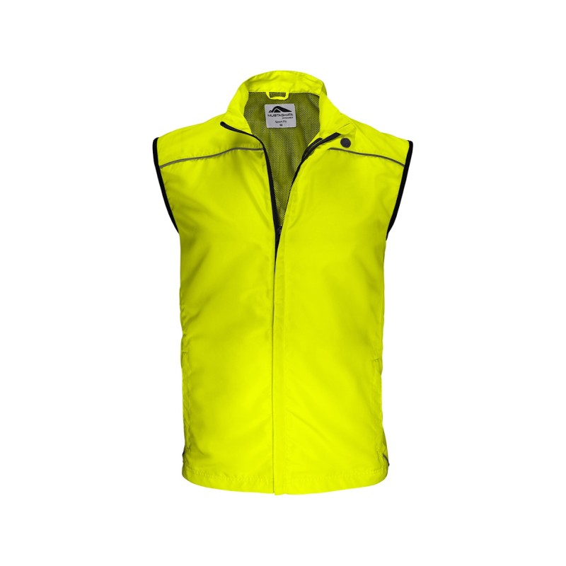 Coupe-vent running unisexe respirant sans manches. Ouverture totale par zip sous flap. 2 poches mains zippées - 2 poches intérieures - biais réfléchissants devant et dos. Dans le dos : partie flottante et empiècement ajouré pour une meilleure évacuation de la transpiration et une meilleure circulation de l'air. Dos allongé. Disponible sur stock et livré sous 24/48h sans personnalisation, coloris disponibles : Blanc, Gris, Jaune Fluo dans les tailles S, M, L, XL, 2XL