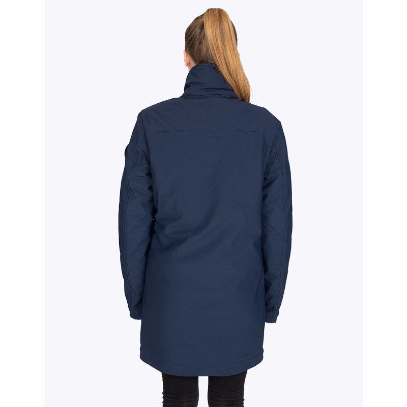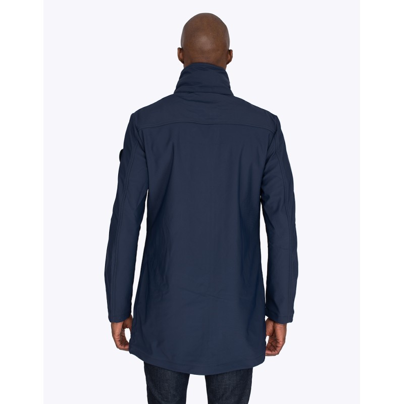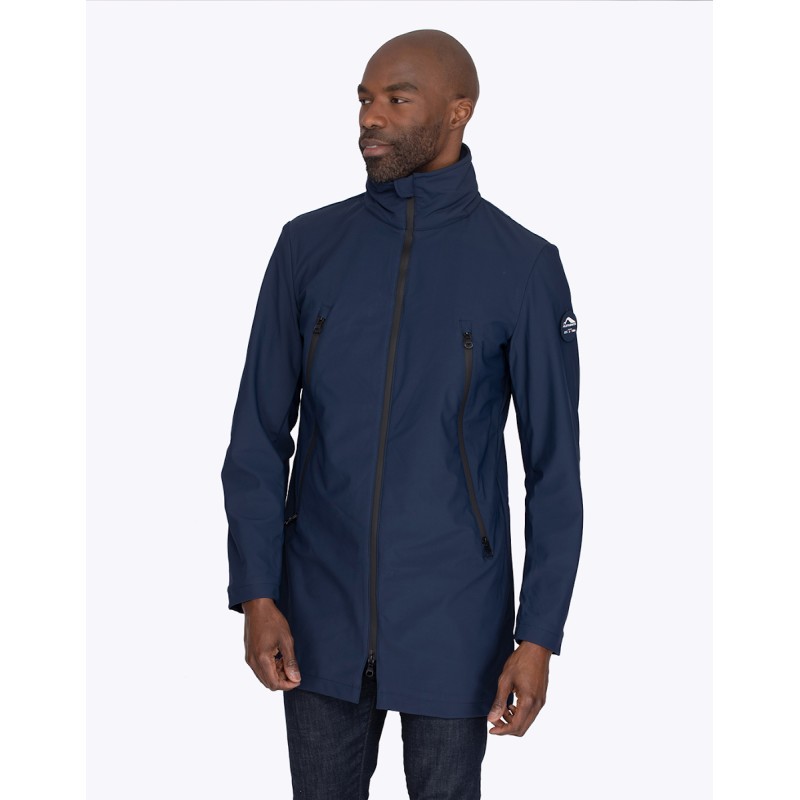 Veste longue unisexe en softshell 2,5 couches. Extérieur 90% nylon 10% elasthanne. Veste 100% imperméable grâce à sa membrane en TPU. Deux grandes doubles poches sur les côtés fermées par un zip waterproof avec puller design. Zip central waterproof. Capuche sous col. Taille ajustée. Disponible sur stock et livré sous 24/48h sans personnalisation, coloris disponibles : MARINE dans les tailles 2XL