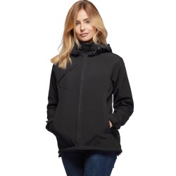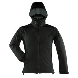 Blouson Softshell femme 94 % Polyester 6 % élasthanne.  3 Couches contrecollées sur laine micro-polaire avec membrane respirante et imperméable 3000/1000. Zip central avec tirette autobloquante - Poignets réglables par Velcro. 1 poche poitrine zippée. 2 très grandes poches zippées sous rabat. 1 poche intérieure côté gauche. Cordon de serrage à la taille - dos plus long . Capuche amovible accrochée par un zip et 2 attache-capuches. Capuche réglable avec stoppeur - Protection menton. Disponible sur stock et livré sous 24/48h sans personnalisation, coloris disponibles : Anthracite, Marine, Gris dans les tailles S, M, L, XL
