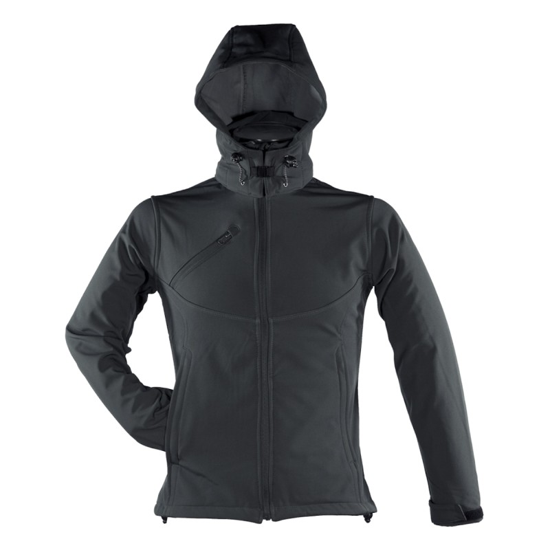 Blouson Softshell femme 94 % Polyester 6 % élasthanne. 3 Couches contrecollées sur laine micro-polaire avec membrane respirante et imperméable 3000/1000. Zip central avec tirette autobloquante - Poignets réglables par Velcro. 1 poche poitrine zippée. 2 très grandes poches zippées sous rabat. 1 poche intérieure côté gauche. Cordon de serrage à la taille - dos plus long . Capuche amovible accrochée par un zip et 2 attache-capuches. Capuche réglable avec stoppeur - Protection menton. Disponible sur stock et livré sous 24/48h sans personnalisation, coloris disponibles : Anthracite, Marine, Gris dans les tailles S, M, L, XL