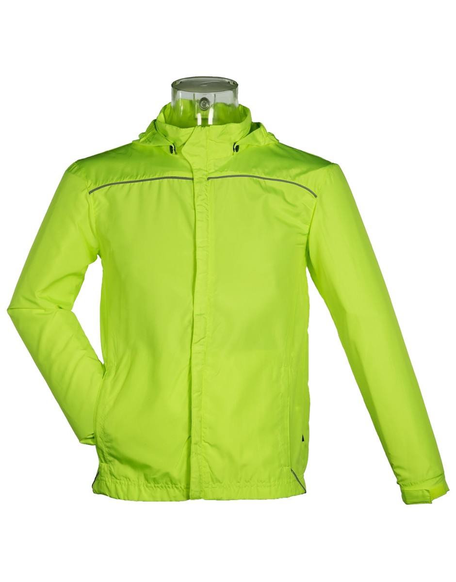 Coupe-vent running unisexe respirant. Poignets élastiqués serrage par Velcro. Ouverture totale par zip sous flap. 2 poches mains zippées - 2 poches intérieures - Biais réfléchissant devant et dos. Dans le dos : partie flottante et empiècement ajouré pour une meilleure évacuation de la transpiration et une meilleure circulation de l'air. Dos allongé. Capuche élastiquée détachable fixée par pressions. Disponible sur stock et livré sous 24/48h sans personnalisation, coloris disponibles : Gris, Blanc, Jaune Fluo dans les tailles S, M, L, XL, 2XL