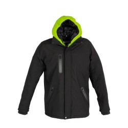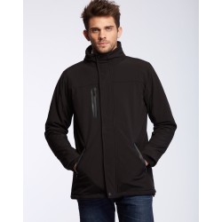Blouson Softshell unisexe 3 couches avec membrane imperméable et respirante 5000/3000. Doublure enuatine de polyester. 3 poches extérieures étanches avec découpes laser, poche portefeuille. Doublure zippée pour passage jeannette pour broderie et sérigraphie. La softshell est disponible du Gris XS au 5XL