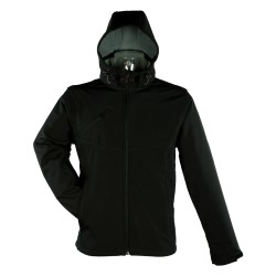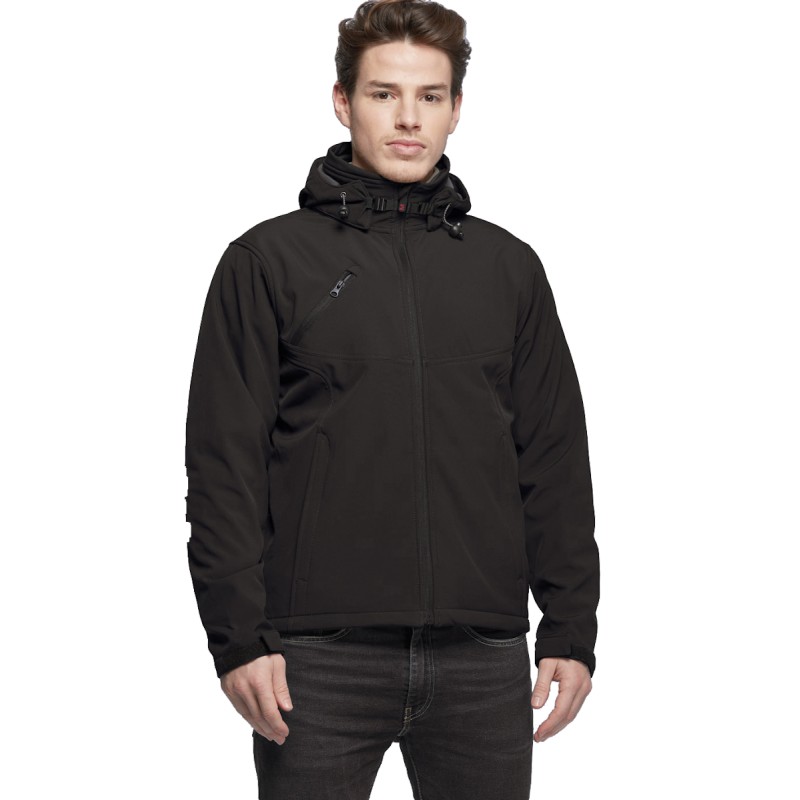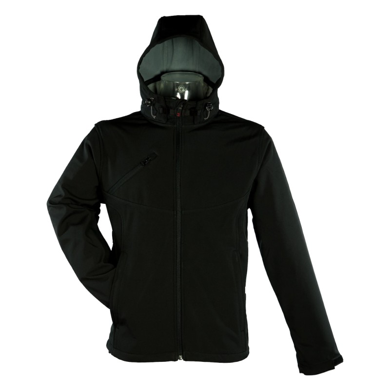 Blouson Softshell 94 % Polyester 6 % Elasthanne. 3 Couches contrecollées sur laine micro-polaire avec membrane respirante et imperméable 3000/1000. Zip central avec tirette autobloquante - Poignets réglables par Velcro. 1 poche poitrine zippée. 2 très grandes poches zipées sous rabat. 1 poche côté gauche intérieure. Cordon de serrage à la taille - dos plus long . Capuche amovible accrochée par un zip et 2 attaches capuche. capuche réglable avec stoppeur - Protection menton. Disponible sur stock et livré sous 24/48h sans personnalisation, coloris disponibles : Anthracite, Marine, Gris dans les tailles S, M, L, XL, 2XL, 3XL, 4XL, 5XL, 6XL
