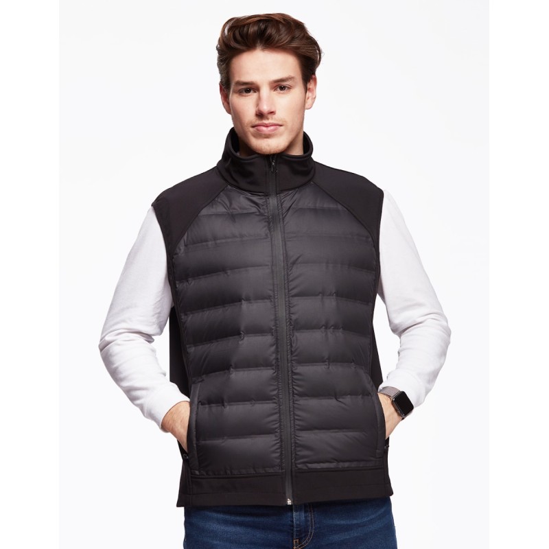 Bodywarmer hybride Homme avec combination softshell-doudoune. Le buste est constitué d’une doudoune en duvet véritable avec une construction soudée, imperméable et déperlante. Les épaules et le dos sont composés d’une matière softshell 3 couches avec membrane qui rend le produit imperméable et déperlant. La doudoune donne le confort et la chaleur quand la softshell confère tenue et allure. 2 poches zippées au main. Revêtement en polyester 50D. Disponible sur stock et livré sous 24/48h sans personnalisation, coloris disponibles : Gris dans les tailles 2XL