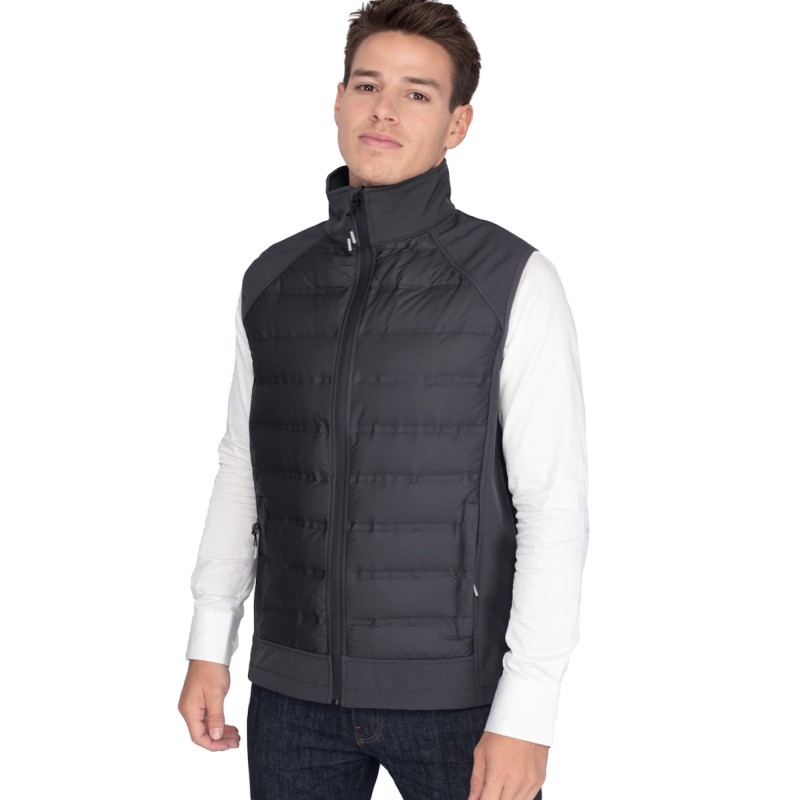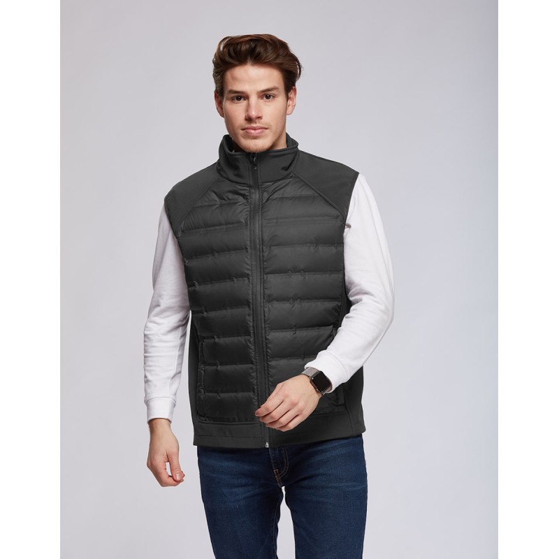 Bodywarmer hybride Homme avec combination softshell-doudoune. Le buste est constitué d’une doudoune en duvet véritable avec une construction soudée, imperméable et déperlante. Les épaules et le dos sont composés d’une matière softshell 3 couches avec membrane qui rend le produit imperméable et déperlant. La doudoune donne le confort et la chaleur quand la softshell confère tenue et allure. 2 poches zippées au main. Revêtement en polyester 50D. Disponible sur stock et livré sous 24/48h sans personnalisation, coloris disponibles : Gris dans les tailles 2XL