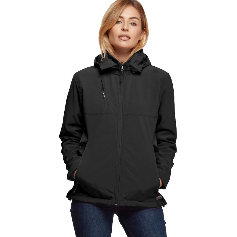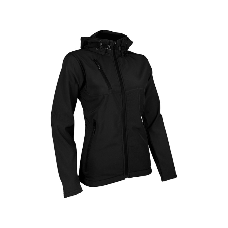 Veste softshell Femme à capuche détachable, 94% Polyester / 6% Elasthanne. Respirant et déperlant. Polaire contre-collée. Doublure intérieure par dessus les poches. 2 poches mains zippées. 1 poche poitrine zippée. Capuche ajustable amovible fixée par zip et crochets. Cordon de serrage à la taille. Disponible sur stock et livré sous 24/48h sans personnalisation, coloris disponibles : Gris, Rouge, Anthracite, Royal, Orange, Marine dans les tailles S,M,L,XL