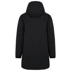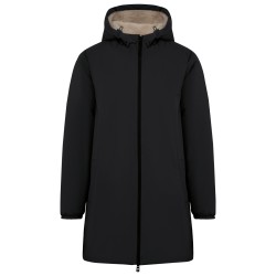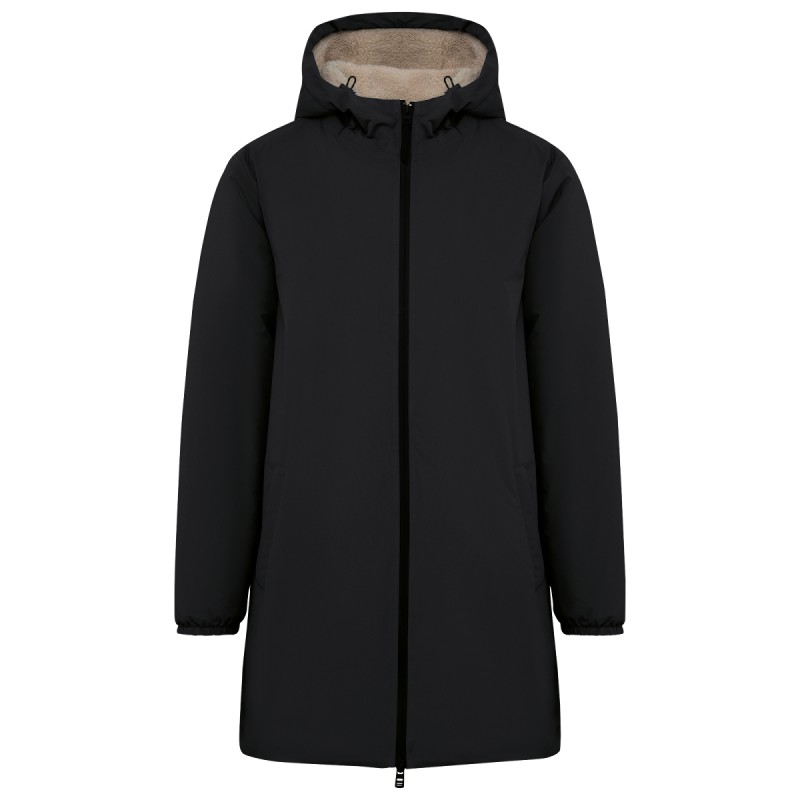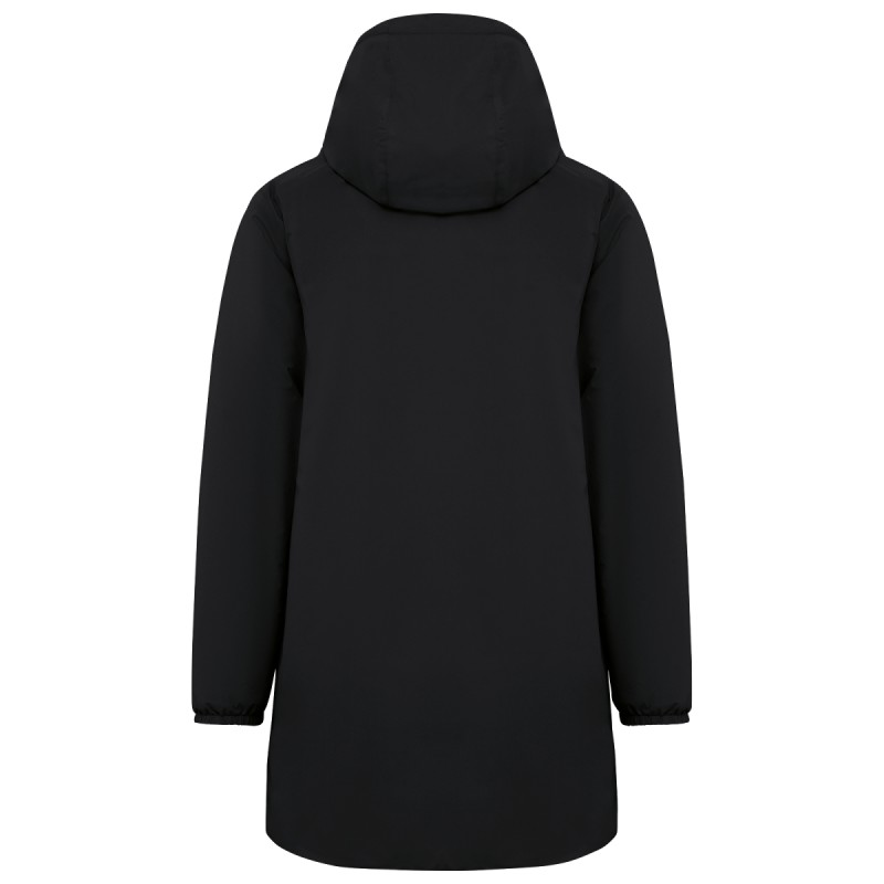 100% polyester recyclé post-consumer. Coupe droite. Imperméable 4000mm. Respirant 3000 g/m²/24h. Produit doublé en sherpa écru sur toutes les couleurs, capuche et corps. Manches doublées en taffetas 210T écru sur toutes les couleurs et rembourrées. Zip imperméable recyclé avec double tire-zip en métal recyclé. Parmenture en finition intérieure en tissu principal. Deux poches côtés passepoilées avec zip inversé. Capuche 3 panneaux avec cordon de serrage et stoppeurs recyclés intérieurs. Bas de manches élastiqués. Poche passepoilée intérieure côté cœur. Patch de personnalisation intérieur en tissu principal. Zip de personnalisation poitrine et bas de vêtement. Tissu avec membrane intérieure et coutures thermo soudées permettant au produit d'être imperméable.