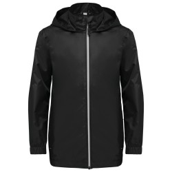 100% polyester mat 210T enduction PU. Tissu imperméable 1500 mm. Coutures thermosoudées étanches aux épaules et capuche. 2 poches zippées côtés et tire-zip. 2 poches intérieures. Fermeture devant par zip contrasté. Capuche dans le col avec patte auto-agrippante. Bas de manches élastiqué. Etiquette de marque détachable.