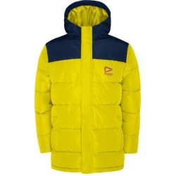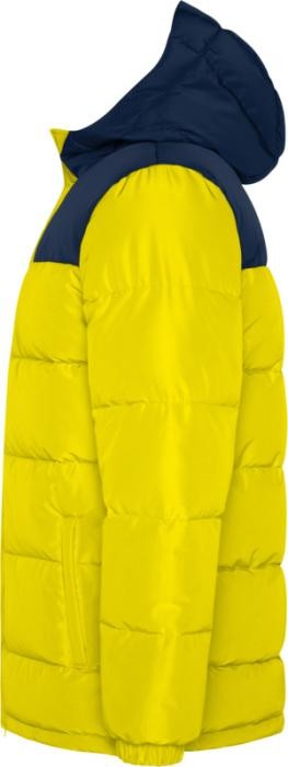 Veste matelassée avec capuche fixe. Fermeture à glissière sur le devant avec rabat. Protège-menton. Deux poches latérales avec fermeture zippée. Poignets élastiques.