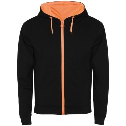 Veste de survêtement en polaire non brossée avec détails en couleur fluo. Fermeture à glissière centrale avec tirette contrastée. Capuche avec doublure en polyester microperforé et couleur fluo contrastée. Cordon de serrage et œillets métalliques en couleur fluo contrastée. Poignets et taille côtelés 1x1. Deux poches avant avec une large bordure. Surpiqûres renforcées au niveau du col intérieur. Étiquette détachable.