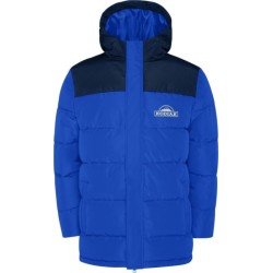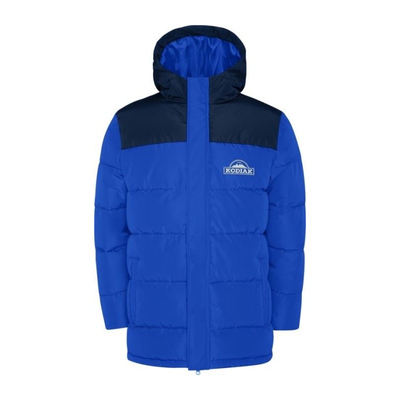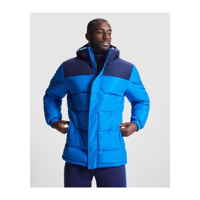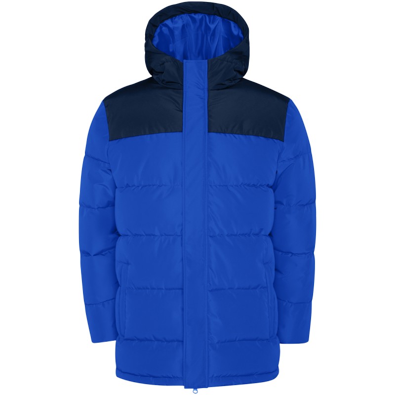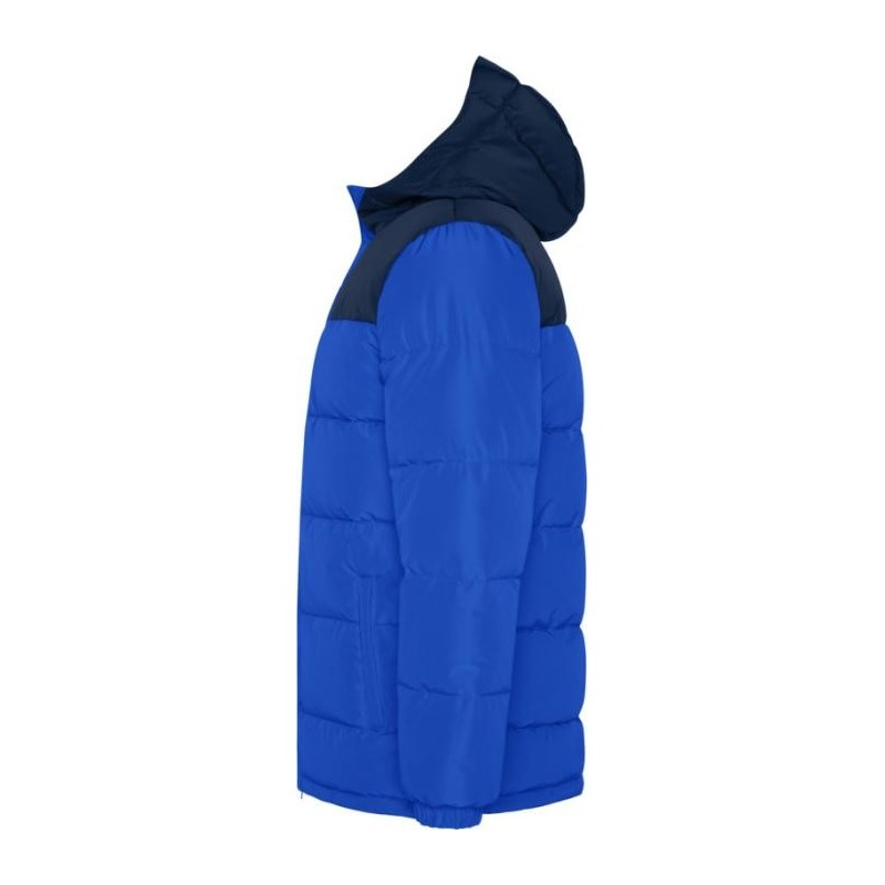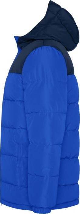 Veste matelassée avec capuche fixe. Fermeture à glissière sur le devant avec rabat. Protège-menton. Deux poches latérales avec fermeture zippée. Poignets élastiques.