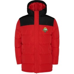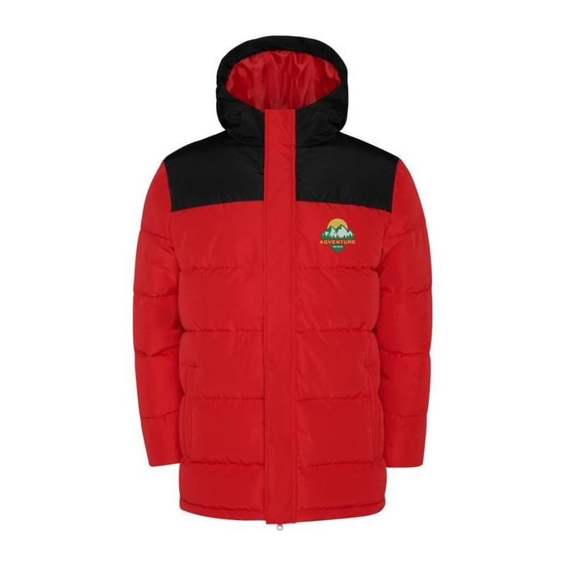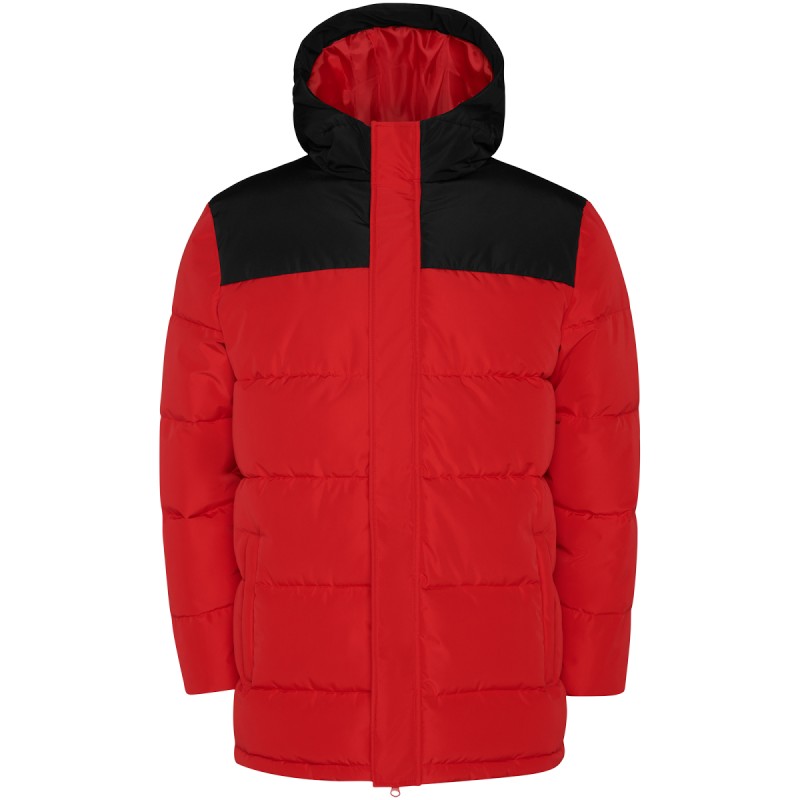 Veste matelassée avec capuche fixe. Fermeture à glissière sur le devant avec rabat. Protège-menton. Deux poches latérales avec fermeture zippée. Poignets élastiques.