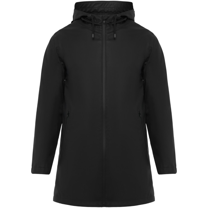 Veste imperméable. Capuche avec visière. Fermetures zippées et coutures thermoscellées. Détails contrastés en noir. Deux poches latérales avec fermeture zippée. Fente sur l'ourlet arrière. Étiquette détachable. Imperméable.