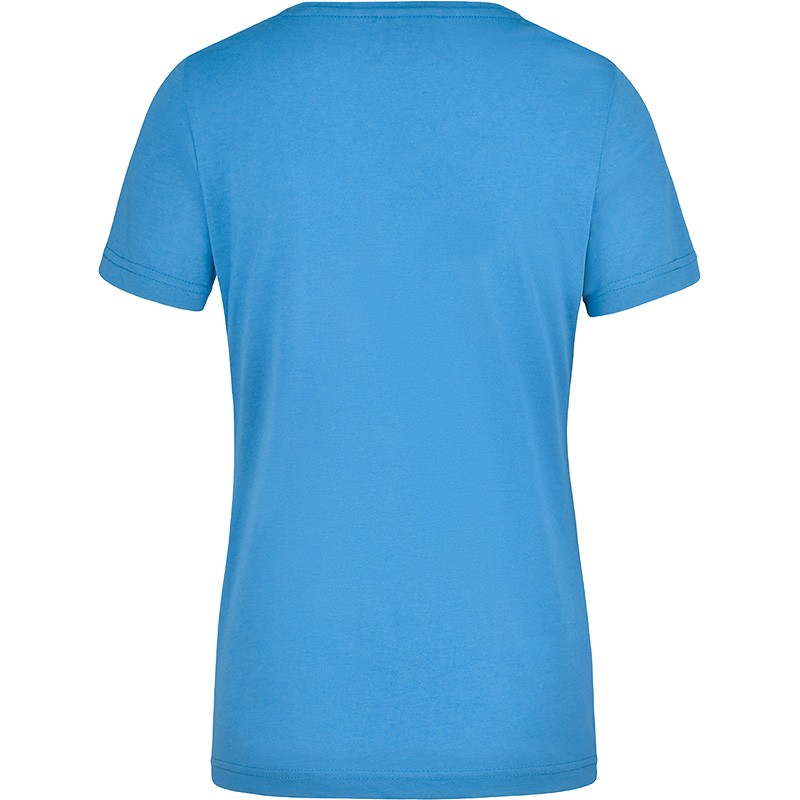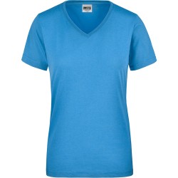 T-shirt de travail Femme Manches courtes Col V avec élasthanne Single jersey Coupe légèrement cintrée 50 % coton / 50 % polyester 160 gr/m² Lavable à 60°C et adapté au sèche-linge