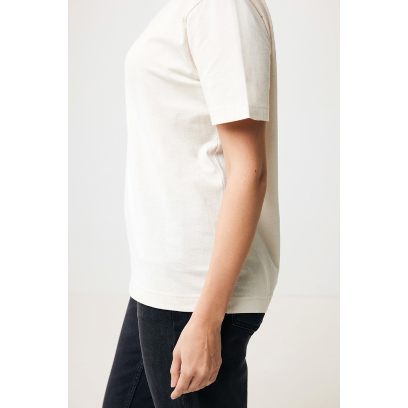 T-shirt unisexe à coupe décontractée en 100 % coton, dont 50 % recyclé et 50 % biologique, 180 G/M². Le t-shirt a un col rond avec une côte 1x1. L'utilisation de véritables matériaux de tissus recyclés & organiques et les déclarations d'impact environnemental sont garanties, en utilisant le traceur physique disruptif AWARE™ et la technologie blockchain. En scannant le code QR, vous aurez accès à un passeport numérique dédié du produit. 2 % des recettes de chaque produit vendu seront reversés à Water.org. Ce produit est certifié OEKO-TEX® STANDARD 100 2303045 Centexbel. En raison de la nature des fils recyclés, des impuretés et des variations de couleur peuvent apparaître.