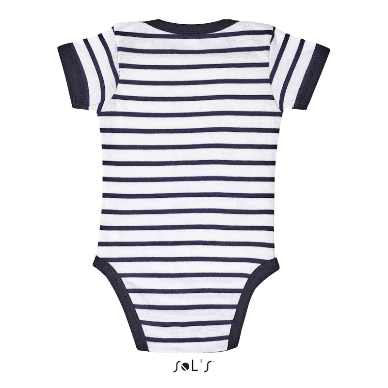 Fermeture par boutons pression à l'entrejambeEternel classique toujours à la mode dans les plus belles qualités que sont le coton peigné et les rayures tissées.