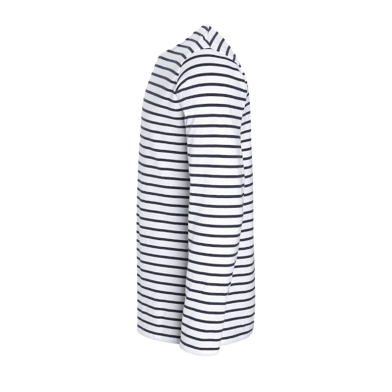 Détails en chambray à l'intérieur du colEternel classique toujours à la mode dans les plus belles qualités que sont le coton peigné et les rayures tissées.