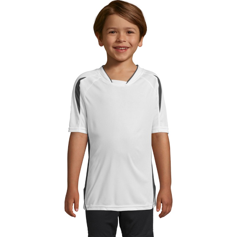 MAILLOT TRAVAILLÉ ENFANT MANCHES COURTESCol fantaisie fermé avec liseré contrasté