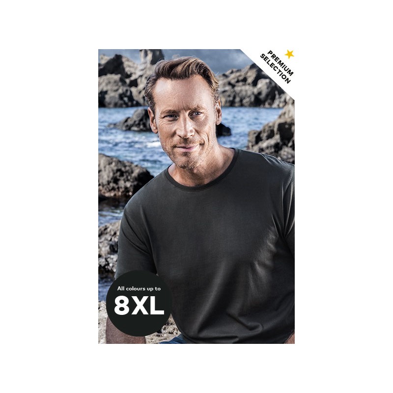 T-Shirt Bio Premium-T Homme, étiquette taille neutre, coton certifié (biologique), jersey simple, 100 % coton, 180 g/m², XS-5XL. Unité = 10 pièces.