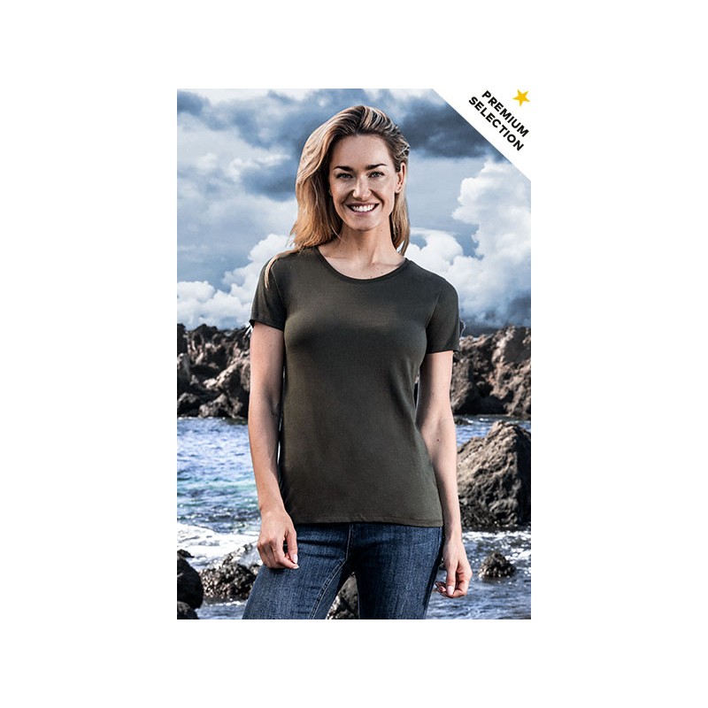 T-Shirt Bio Premium-T Femme, étiquette taille neutre, coton certifié (biologique), jersey simple, 100 % coton, 180 g/m², XS-XXXL. Unité = 10 pièces.