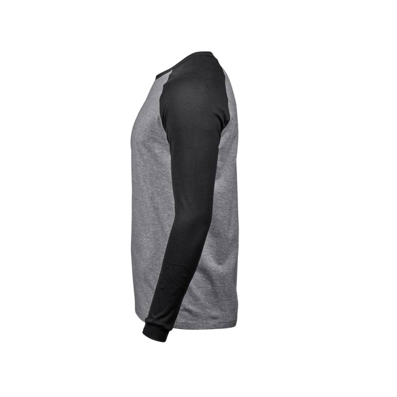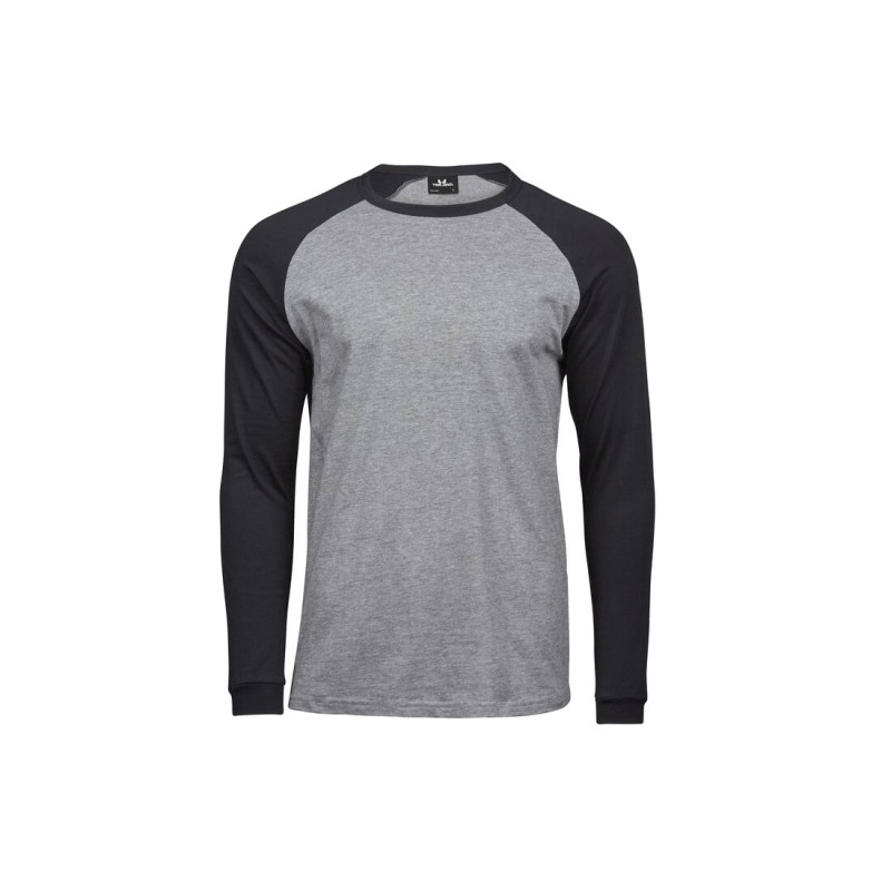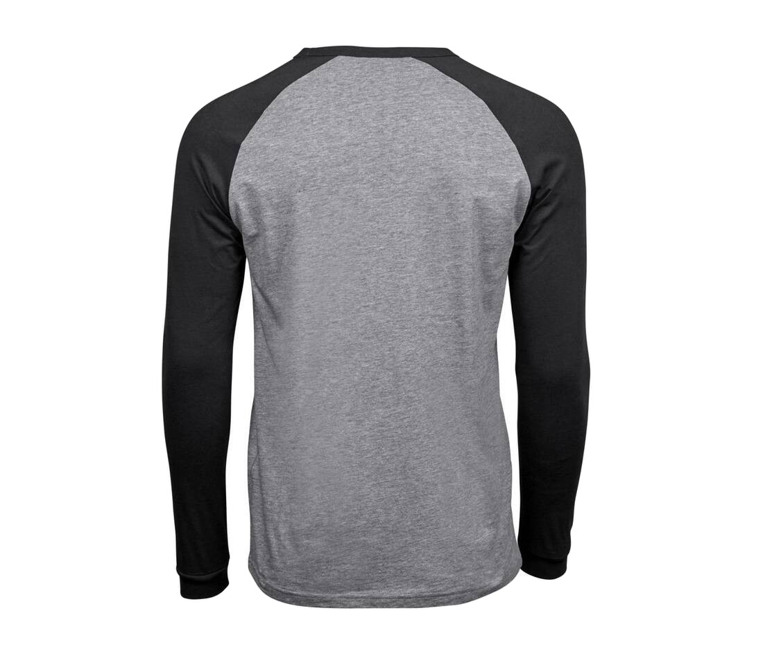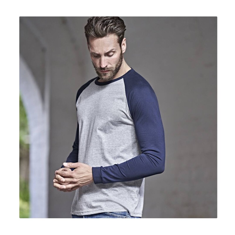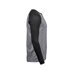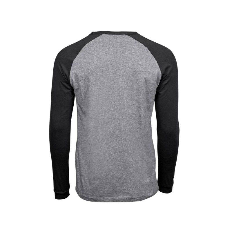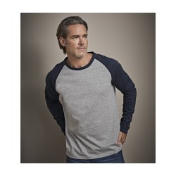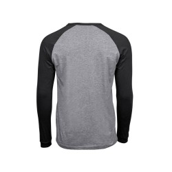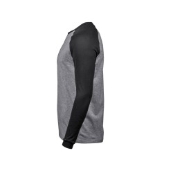 Coupe ajustée. Manches raglan et contrastées. Col en bords côte avec élasthanne.