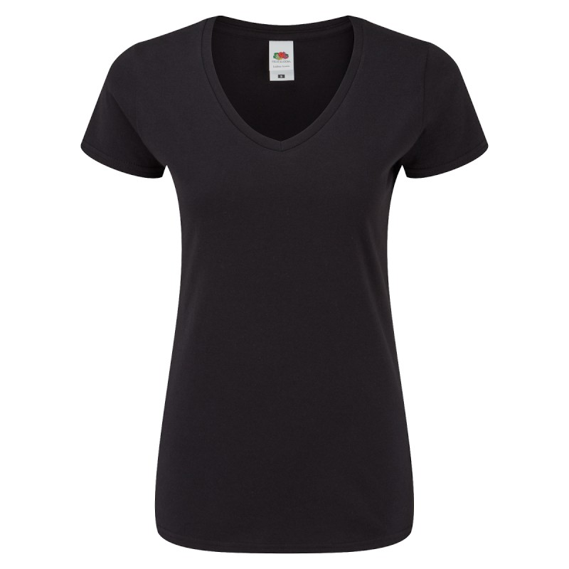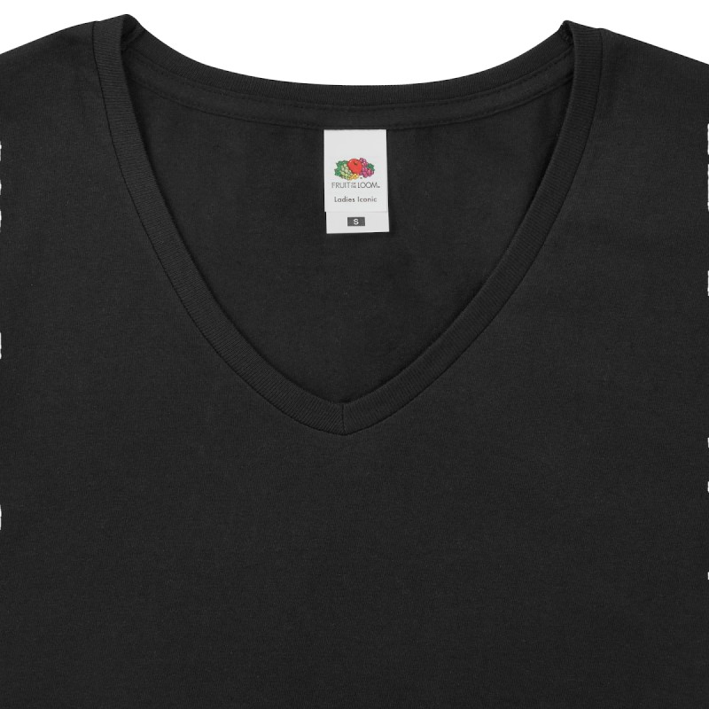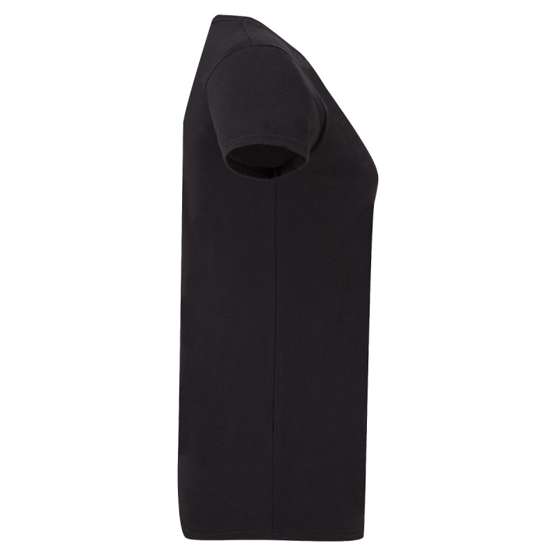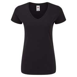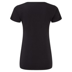 #Ringspun 100% coton peigné#Toucher plus doux#Coutures latérales pour une coupe féminine cintrée#Col en V étroit en bord côte 1X1#Bande de propreté de même tissu au revers du col#Tear away label (étiquette partiellement détachable)