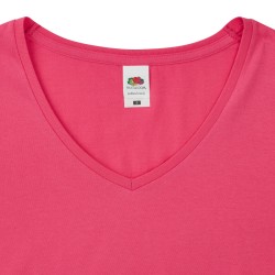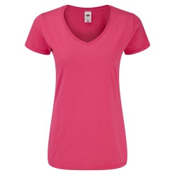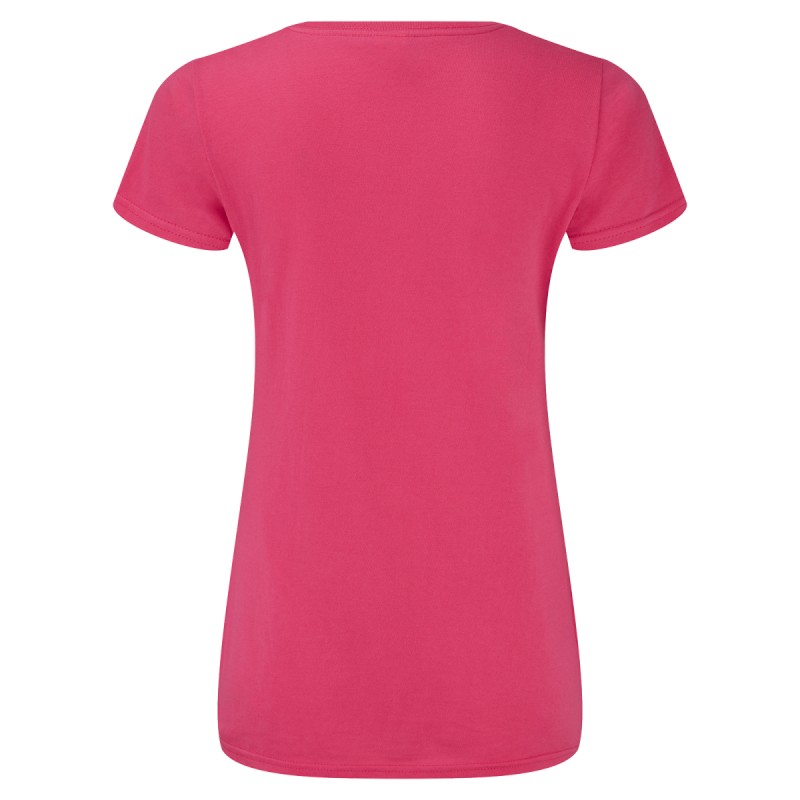 #Ringspun 100% coton peigné#Toucher plus doux#Coutures latérales pour une coupe féminine cintrée#Col en V étroit en bord côte 1X1#Bande de propreté de même tissu au revers du col#Tear away label (étiquette  partiellement détachable)