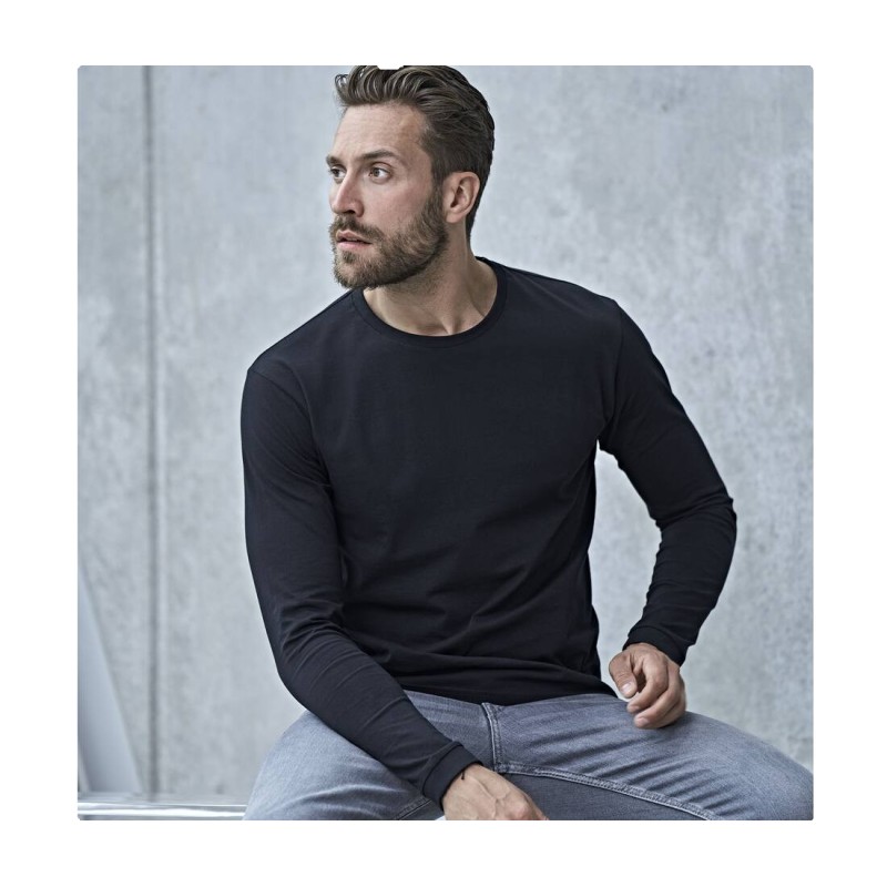 Coupe ajustée. Col fin double épaisseur avec élasthanne. Poignets avec élasthanne.