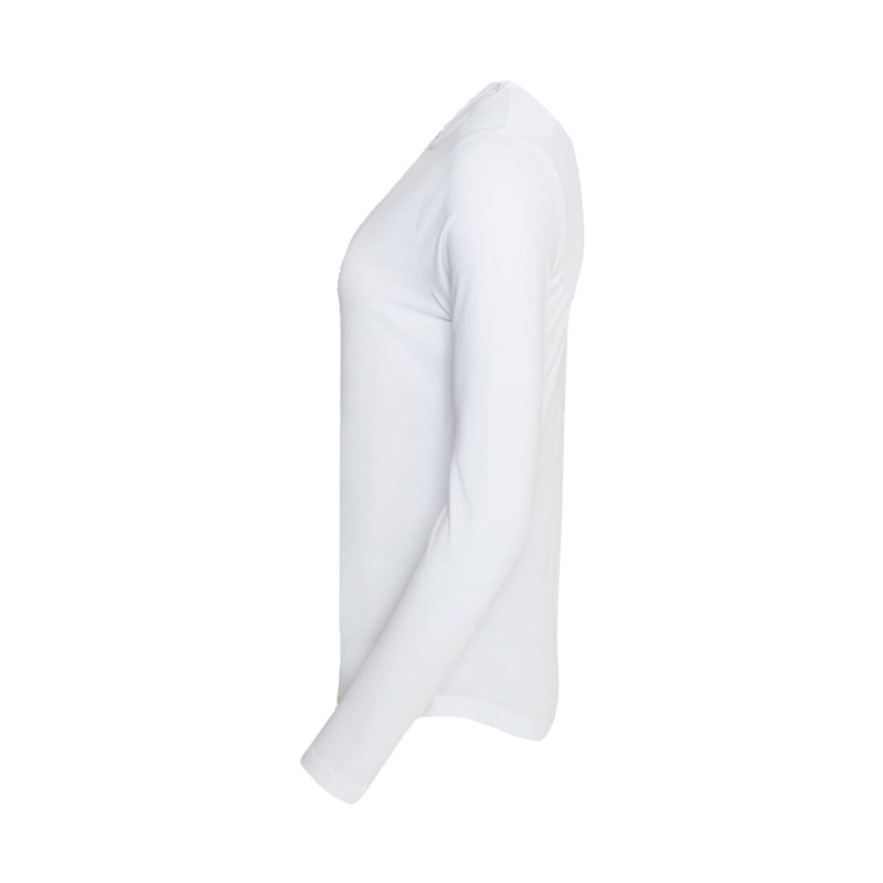 Tee-shirt femme en 100% polyester Neoteric™, matière légère texturée avec propriétés respirantes et facilitant l'évaporation de la transpiration. Manches longues et droites. Protection UPF 30+UV.