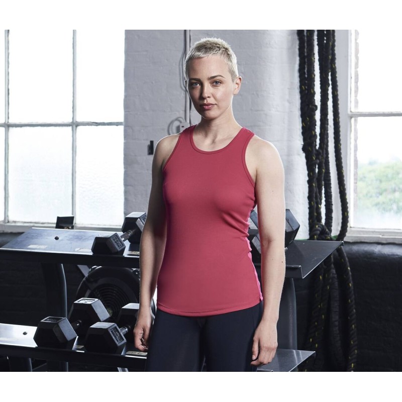 Débardeur femme en 100% polyester Neoteric™, matière légère texturée avec propriétés respirantes et facilitant l'évaporation de la transpiration. Dos nageur. Protection UPF 30+UV.