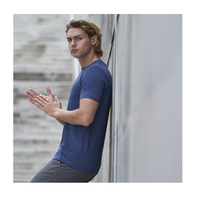 Coupe moderne avec coutures latérales. Étiquette de taille uniquement. Matière Tri-Blend stylée et confortable. Bande de propreté. Col rond à bords côte.