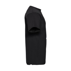Coupe classique et tubulaire. Renfort d'épaule à épaule. Col tricoté à côtes 1x1 à surpiqûres. Manches travaillées pour un look plus actuel.