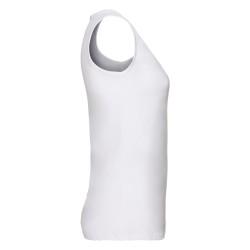 #Bande de propreté de même tissu reliant le col et les emmanchures#Coutures latétales pour une coupe féminine cintrée#Maille et jauge plus fines pour une impression à haute résolution