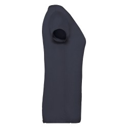 #Col V décolleté en coton/LYCRA®#Bande de propreté de même tissu au revers du col#Coutures latérales pour une coupe féminine cintrée#Maille et jauge plus fines pour une impression à haute résolution