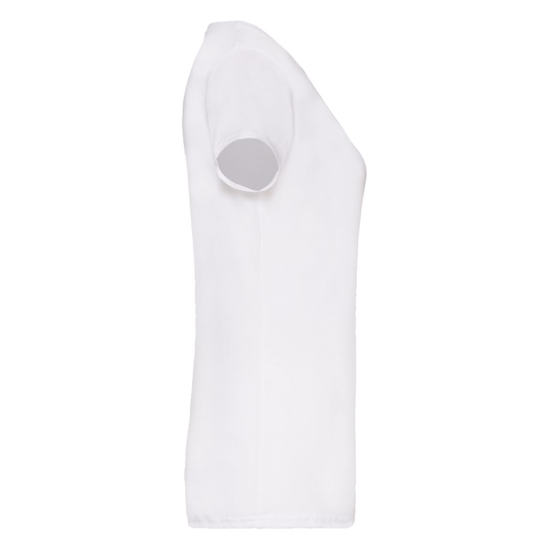 #Col V décolleté en coton/LYCRA®#Bande de propreté de même tissu au revers du col#Coutures latérales pour une coupe féminine cintrée#Maille et jauge plus fines pour une impression à haute résolution