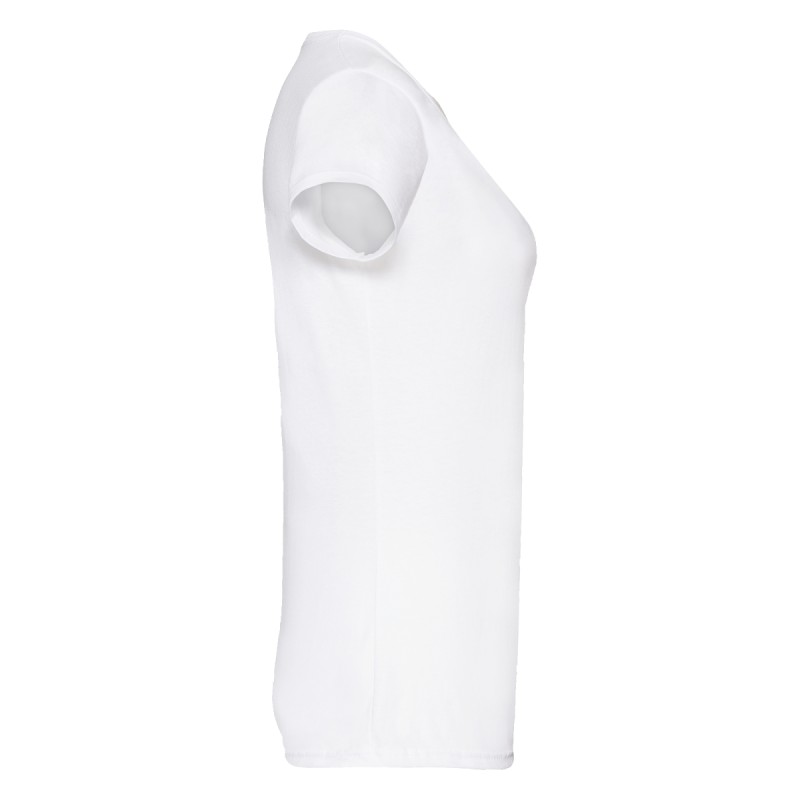 #Col rond avec bande de propreté de même tissu au revers du col#Coutures latérales pour une coupe féminine cintrée#Maille et jauge plus fines pour une impression à haute résolution