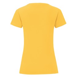 #Ringspun 100% coton peigné#Toucher plus doux#Coutures latérales pour une coupe féminine cintrée#Col rond étroit en bord côte 1X1#Bande de propreté de même tissu au revers du col#Tear away label (étiquette partiellement détachable)