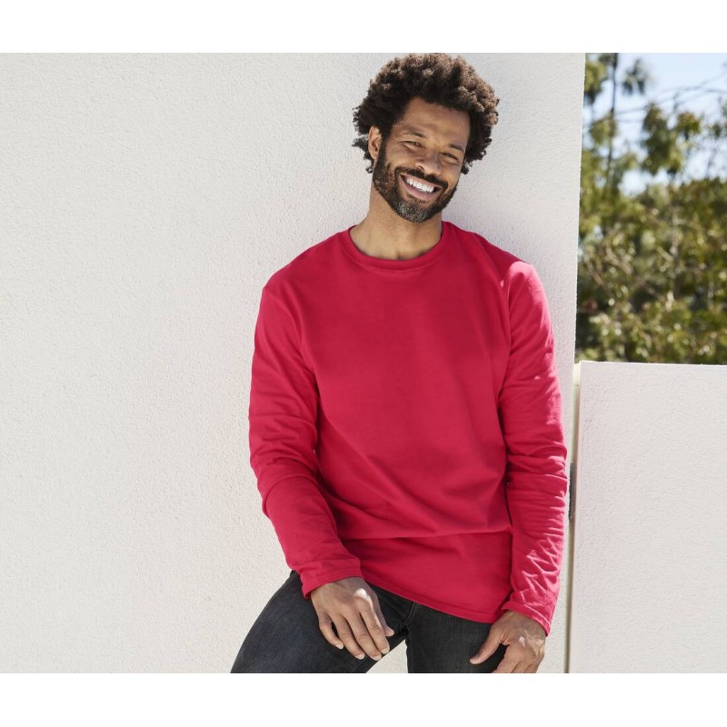 100% coton ring spun pré-rétréci (sauf RS Sport Grey : 90% coton / 10% polyester). Maille jersey. Col rond avec bande de propreté d'épaule à épaule. Ourlets aux manches. Double surpiqûre aux manches et au bas du vêtement. Coupe tubulaire. Tissu tourné d'un quart de tour pour éliminer le pli central.