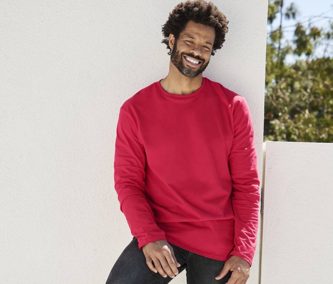 100% coton ring spun pré-rétréci (sauf RS Sport Grey : 90% coton / 10% polyester). Maille jersey. Col rond avec bande de propreté d'épaule à épaule. Ourlets aux manches. Double surpiqûre aux manches et au bas du vêtement. Coupe tubulaire. Tissu tourné d'un quart de tour pour éliminer le pli central.