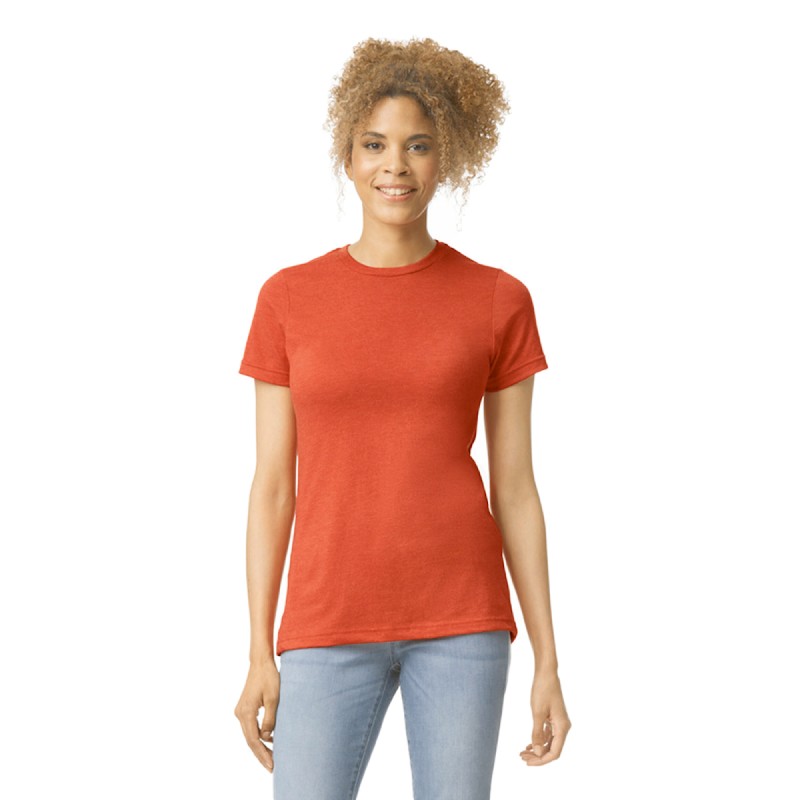60% coton / 40% polyester. Fabriqué avec du coton rings-pun doux et un mélange de coton. Softstyle CVC possède un tissu à avec une densité élevée de points pour offrir une surface d'impression lisse. Le tissu rings-pun doux offre une sensation agréable contre la peau. Sans surpiqûre, largeur réduite, col avec bord-côte. Bande de propreté au cou et aux épaules pour plus de confort et de durabilité. Coupe A-line cintrée, Coutures latérales.