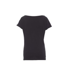Tee-shirt cintré pour femme avec encolure bateau, col bas de 1 cm, manches courtes et étroites finition avec revers fin, couture latérale