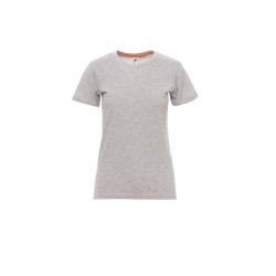Tee-shirt cintré pour femme, encolure ras le cou et manches courtes, col en bord côtes mixte spandex de 1,5 cm avec couture rabattue sur le devant, ruban de renfort d'épaule à épaule dans couleur en contraste sur le col, coutures stretch, couture latérale