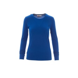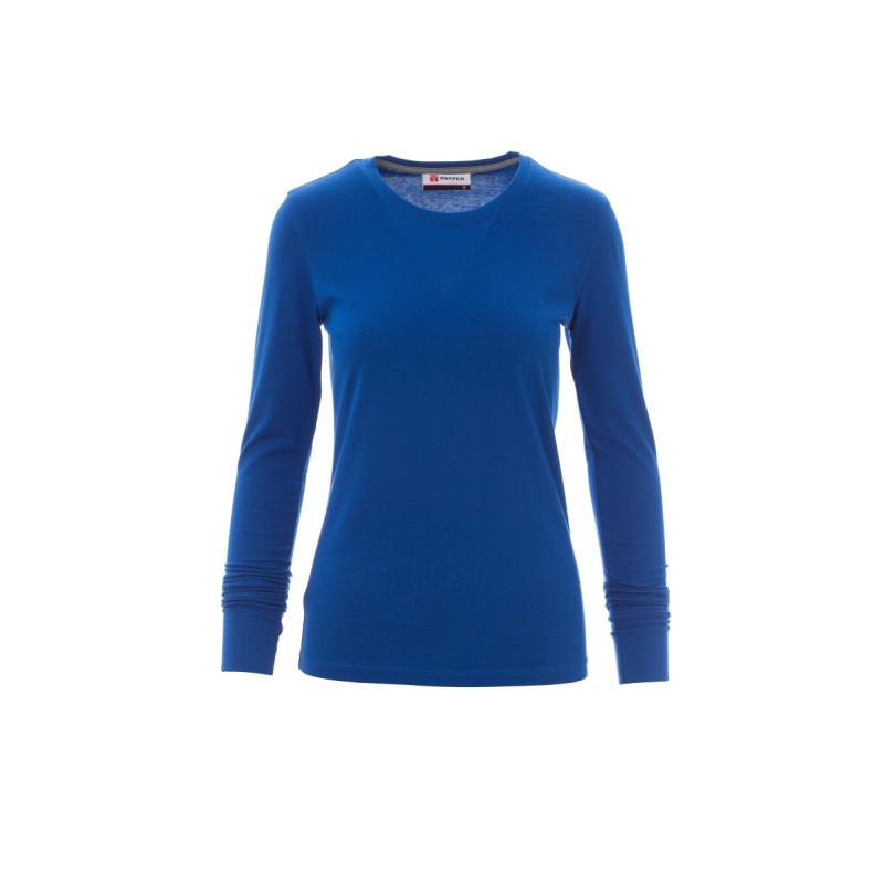 Tee-shirt cintré pour femme, encolure ras le cou et manches longues, col en bord côtes mixte spandex de 1,5 cm avec couture rabattue sur le devant, poignet long, ruban de renfort d'épaule à épaule dans couleur en contraste sur le col, coutures stretch, couture latérale
