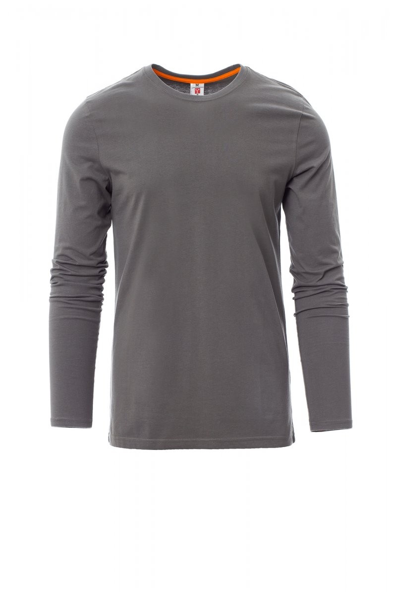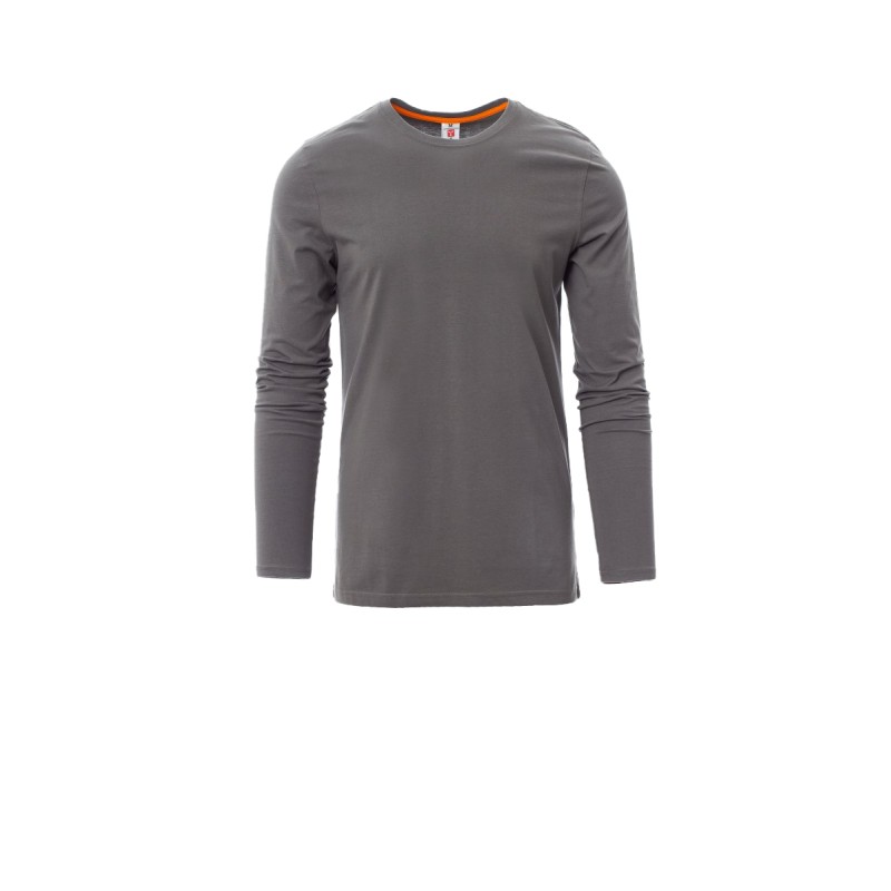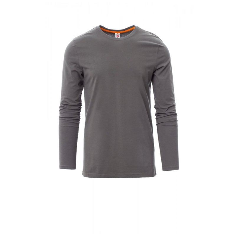 Tee-shirt pour homme, encolure ras le cou et manches longues, col en bord côtes mixte spandex de 1,5 cm avec couture rabattue sur le devant, ruban de renfort d'épaule à épaule dans couleur en contraste sur le col, coutures stretch, couture latérale