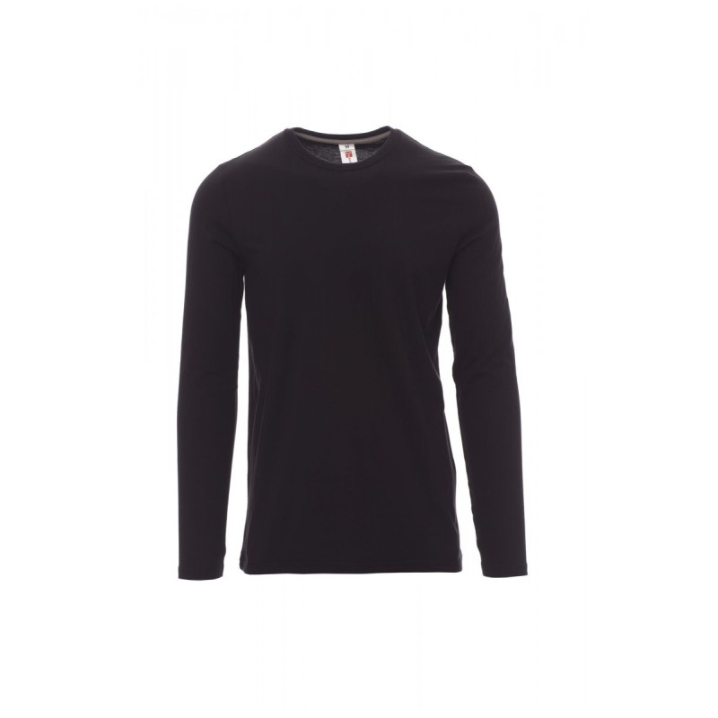 Tee-shirt pour homme, encolure ras le cou et manches longues, col en bord côtes mixte spandex de 1,5 cm avec couture rabattue sur le devant, ruban de renfort d'épaule à épaule dans couleur en contraste sur le col, coutures stretch, couture latérale