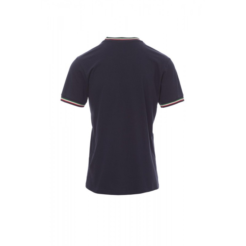Tee-shirt pour homme, encolure ras le cou et manches courtes, col et bordure des manches avec tricolore en contraste, col en bord côtes mixte spandex de 2,3 cm avec couture rabattue sur le devant, ruban de renfort d'épaule à épaule