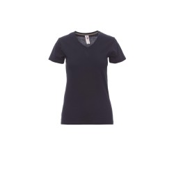 Tee-shirt cintré pour femme, encolure en V et manches courtes, col en bord côtes mixte spandex de 1,5 cm avec couture rabattue sur le devant, ruban de renfort d'épaule à épaule dans couleur en contraste sur le col, coutures stretch, couture latérale